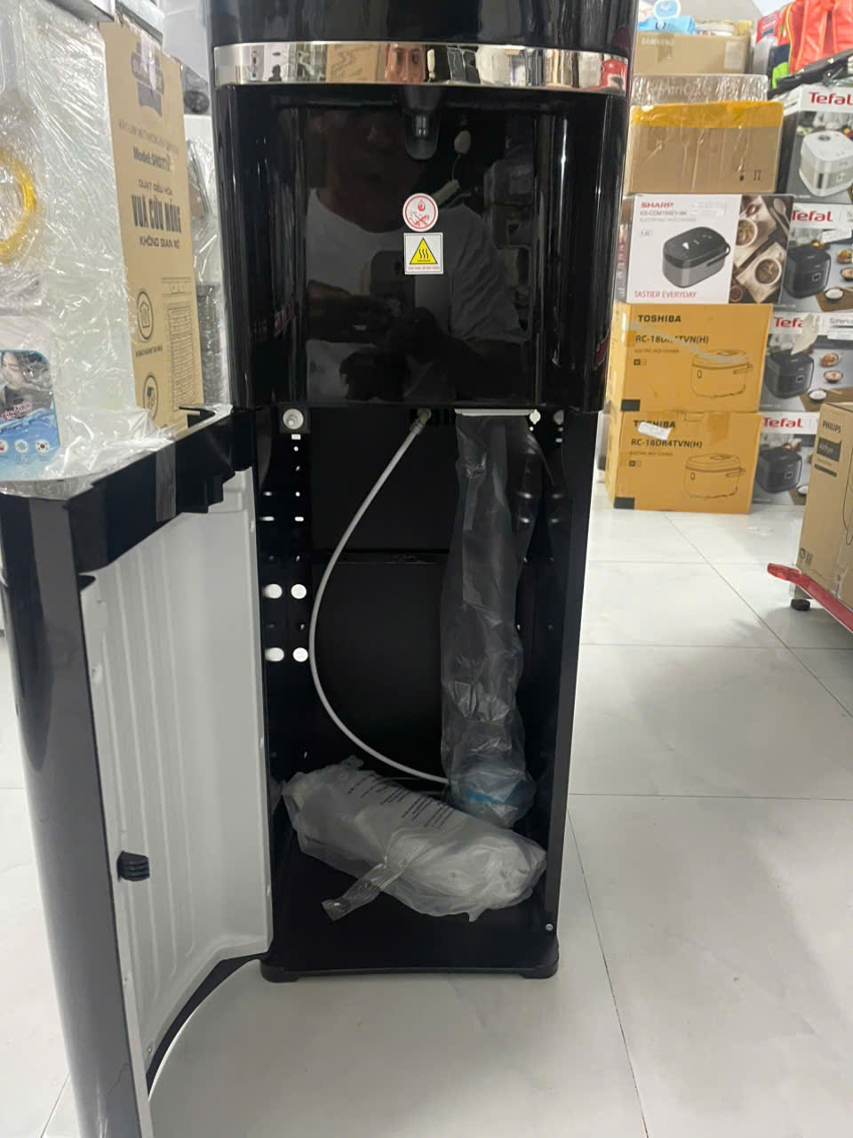 Chất liệu bình chứa: Nóng: thép không gỉ - Lạnh: nhựa