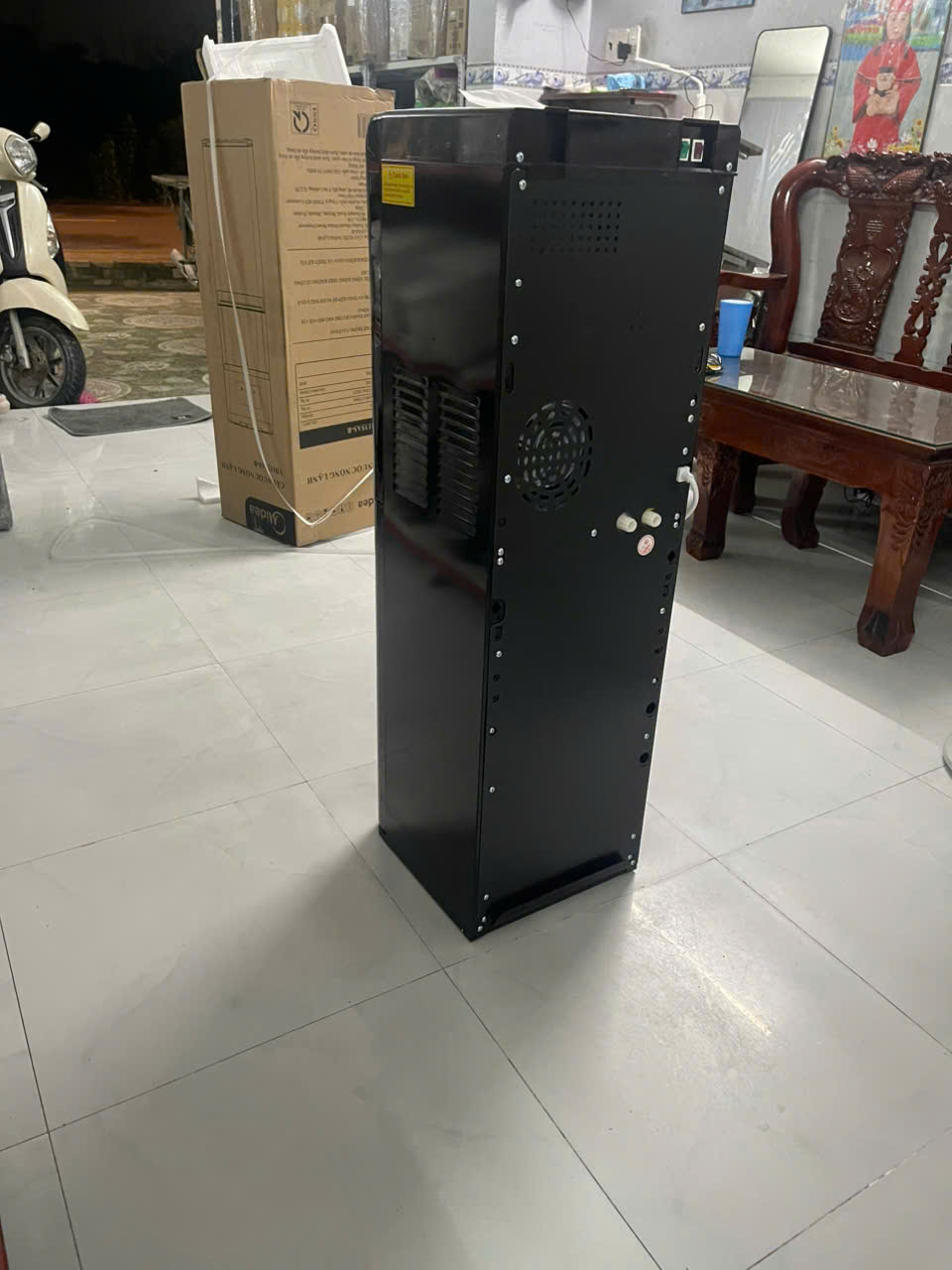 Trang bị đầy đủ tiện ích: có nước nguội, khay hứng nước thừa, đèn báo nóng lạnh,...